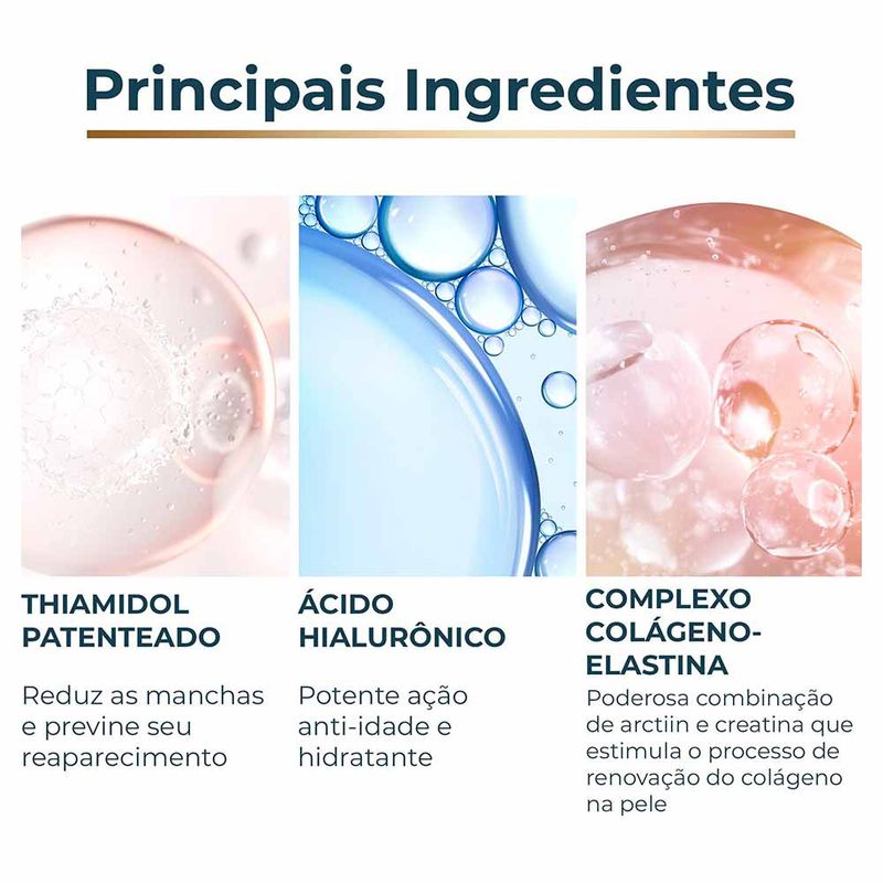 Sua fórmula foi clínica e dermatologicamente comprovada, contém textura de rápida absorção que penetra nas camadas mais profundas da pele melhorando as rugas, densidade e volume.